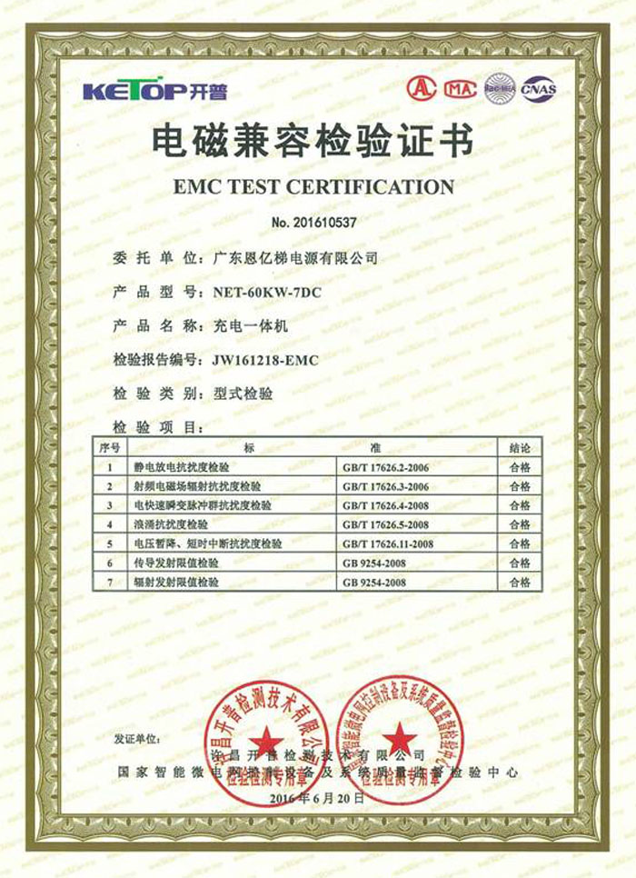 電磁兼容檢驗證書(充電一體機)