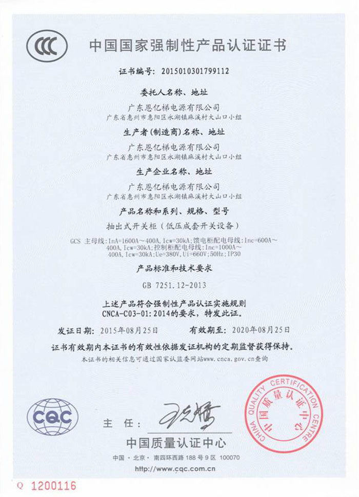 中國國家強制性產(chǎn)品認(rèn)證(抽出式開關(guān)柜)