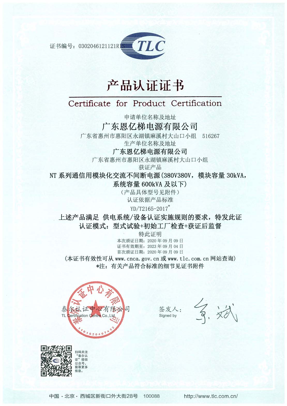泰爾認證(模塊化不間斷電源)